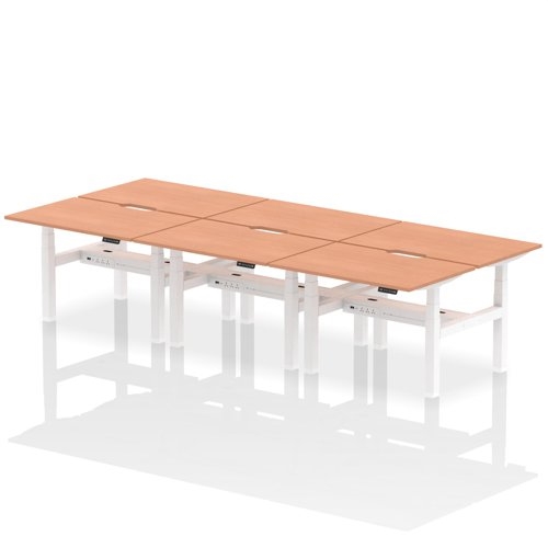 Air Back-to-Back 1200 x 800mm Height Adjustable 6 Person Bench Desk Beech Top with Scalloped Edge White Frame